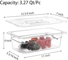 Notes: Not safe for microwave and dishwasher. Capacity: 3.27 Qt/Pc. High Quality Durable: These food pans with lids are made of high-quality PET that won't crack, bend, or dent. Reinforced corners, and textured bottom for long daily use.