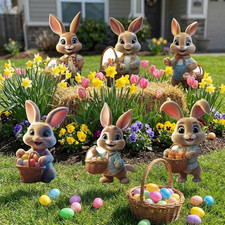 Charming 6 PCS Easter Bunny Decorations Outdoor - This delightful set features 6 unique Easter bunny decorations, perfect for adding a festive touch to your outdoor space. Each sign showcases an adorable bunny design that brings cheerful spring vibes to your garden or yard.