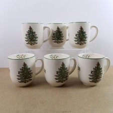 6 Spode Christmas Tree Cafe Mugs 3-7/8" tall x 3-1/4" rim VGC.