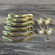 6 Vintage Beaded Gold Tone Brass Drawer/Cabinet Handle 4 Drawer Pull Knobs White. Please review all photos carefully as they are your best description of the item you are purchasing and are a part of the item as described. All photos are of the exact same item that you are buying. The same exact one that will be shipped. Don't hesitate to message me with any questions you have on this item or any others you find in my ebay store. Item comes from a smoke-free, pet free home. Once payment is confirmed I ship the same day or as soon as possible. All shipping costs are based on USPS pricing and are selected as the lowest price possible for both parties.