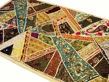 The color palette is very vibrant and rich. Has a matching cotton backing for support. Huge size of60"x40" for multiple use! Hang this on the wall or simply use it as a throw over your couch/ table/ bedside/ chest or even as a glittering curtain drape.