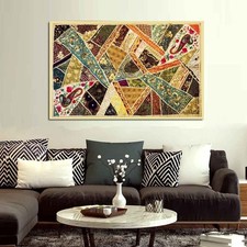 The color palette is very vibrant and rich. Has a matching cotton backing for support. Huge size of60"x40" for multiple use! Hang this on the wall or simply use it as a throw over your couch/ table/ bedside/ chest or even as a glittering curtain drape.