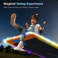 【Magic Carpet LED Light Swing】Featuring 8 flashing modes, the rectangle platform swing transforms outdoor play into a magical adventure for kids. Create unforgettable moments with vibrant lighting that fits any occasion 【Extra-Large Family Swing】Designed for comfort and safety, this giant rectangular swing measures 60x32 inches, making it perfect for kids or adults to lay down and enjoy swinging. With a 700 lbs weight capacity, it’s perfect for the whole family 【Durable Waterproof Outdoor Swing】Made from high-quality 900D Oxford fabric, this waterproof swing withstands rain, sun, and snow while requiring minimal maintenance. Perfect for outdoor swing for kids and families who love spending time in nature 【Extra-Long Hanging Strap】 The Hapfan kids tree swing comes with a complete set of han.