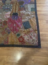 62” x 44” Antique Tapestry Wall Hanging Embellished w Sequin. Zari Patchwork. additional preview
