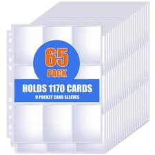 65 Pack 9 Pocket Card Sleeves Binder Sheets, Trading for 3 Clear
