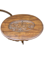 66546 Antique Walnut Tray Top Coffee Table Stand RARE City Scape Design