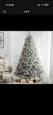 The 6ft Snow Flocked Christmas Tree by Amerzest is a beautifully decorated artificial tree perfect for indoor use during the holiday season. This hinged spruce tree features multi-color LED lights, 300 hand-strung lights, and decorative pine cones for a festive look. The realistic tree shape, with 1960 branch tips, creates a warm and inviting atmosphere in your home. Made of spruce material, this pre-lit tree stands at 6ft tall and 50 inches wide, weighing 40 lbs. Add this charming Christmas tree to your holiday decor for a touch of seasonal cheer.