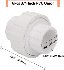 6Pcs 3/4" PVC Union Coupling Pipe Fitting (Socket X Socket) 3/4Inch PVC Slip Uni additional preview