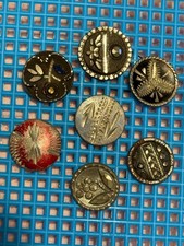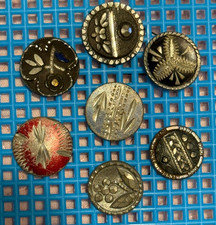 7 Antique etched Pewter small Buttons