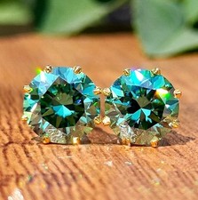 7 Ct Treated Certified Blue Diamond Solitaire Stud Earrings, 925 Silver