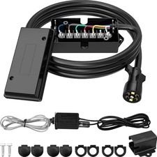 7 Way 8 Foot Trailer Cord with 7 Gang Junction Box Kit, Include 12V Brea