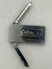 The 70s Money Clip with Folding Knife and Nail File by Imperial Stainless is a vintage collectible pocketknife made in the USA in 1977. This unique tool features a stainless steel blade with a length of under 2.75 inches, perfect for everyday carry. The ambidextrous manual opening mechanism makes it convenient for quick access to the folding knife and nail file functions. The sleek silver color and train emblem add a touch of nostalgia to this original, one-blade pocketknife with a slip joint lock type. Pocket knife has a train emblem logo on the front. Great for any train railroad enthusiast. Free shipping for your convenience.