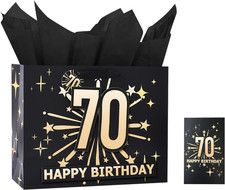 70th Birthday Gift Bag Set with Card & Tissue – 13" Elegant Keepsake Party Bags