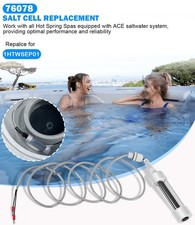 FEATURES: Great Compatibility- The Salt Cell replaces for Hot Spring ACE 76078. Work with all Hot Spring Spas equipped with ACE saltwater system from 2009 to the present, providing optimal performance and reliability Enhanced Water Clarity- This cell replacement helps chlorine production, generating much softer, safer water on your eyes, skin and hair. Keep ongoing protection against contaminants, helping to maintain clean water over time Suitable Working Environment- Ideal for new salt cell installation salt level is 1500-1600 ppm. Water temperature must be minimum 95°F/ 35°C for Ace System to work. Make sure filters be clean and in good condition .