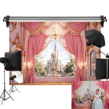 7x5 ft Castle Backdrop Photography Pink Curtains Computer Printed Props