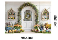7x5ft Colorful Easter Eggs Backdrops White Rabbit Flowers Background Studio Pro