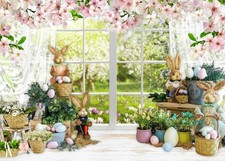 7x5ft Spring Easter Backdrop Party Window Eggs Rabbit Photography Decor X207