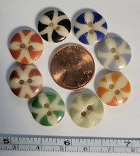 8 ANTIQUE #28 CHINA STENCIL buttons. I am not a button collector, so I don't know all the details of these. These are china stencil 2 hole buttons in assorted colors.