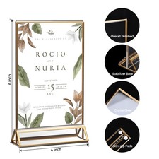 8-Pack Acrylic Sign Holders 4x6 Gold Frames - Double-Sided Table Number Stands