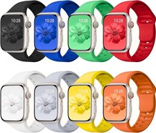 Compatible with Apple Watch models: 40mm, 38mm, 41mm, 42mm, 44mm, 45mm, 49mm, 46mm. Waterproof design for active lifestyles. Includes 8 silicone sport bands in various colors. Soft and flexible material for comfortable wear.