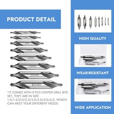8 Pcs Center Drill Bits Set High Speed Steel Angle Center Drills Bits Durable...