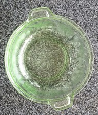 8" Uranium Glass Vintage Small Round Serving Dish Double Handle 8 inch