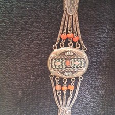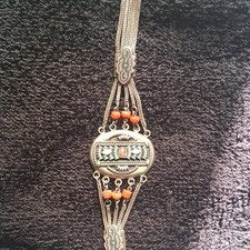 "800" 5-Strand Chain Bracelet with Coral Oval Beads Native American Style