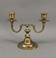 Solid brass, screwed, on a round, profiled base with a scalloped edge, baluster shaft with floral engravings, two horizontal candlestick arms, signs of age and wear, H 18 cm, W 22 cm etope 8 etope 8 etope 8 etope 8 etope 8.