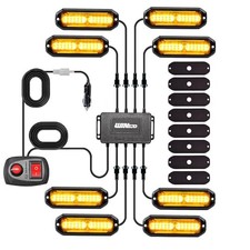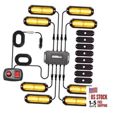 8PCS LED Strobe Lights Kit 12V 24V Sync Feature 12 LED Emergency Hazard Amber