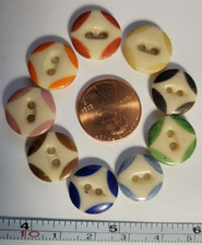 9 ANTIQUE #1 CHINA STENCIL buttons. I am not a button collector, so I don't know all the details of these. These are china stencil 2 hole buttons in assorted colors.