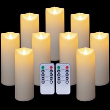 9 Pc Flickering Flameless LED Candles with Remote Timer for Romantic Cream