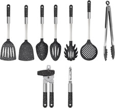 9 Pcs Elegant Black Cooking Utensils Set with White Speckles - Non-Toxic, Dishwasher Safe Kitchen Utensils Set with Heat Resistant Comfort Handles - Includes Spatula & Spoon for Nonstick Cookware. Safe, Durable & Dishwasher Safe Made from BPA-free, food-grade PBT, these utensils are heat-resistant, nonstick friendly, and dishwasher safe.