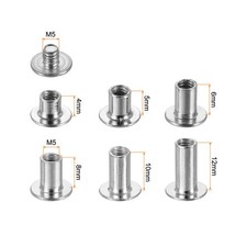 Description:Made of sturdy metal, these leather rivets are durable, smooth and burr-free. The screw rivets for leather are wear-resistant, waterproof and rust-proof, and can withstand frequent use without breaking or deforming.Easy to install and remove, just insert into the pre-punched holes and tighten with a screwdriver.Widely used in fastening and binding crafts and various leather products, such as wallets, backpacks, pants, mobile phone cases, shoes, belts, hats, photo albums, books, etc.Specification:Chicago Screw Size: M5x4,M5x5,M5x6,M5x8,M5x10,M5x12Color: Silver ToneMaterial: carbon steelPackage Content: 90 Sets x Chicago Screw.