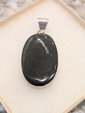 925 22.17g Sterling Silver Taxco Mexico Large Oval Onyx Pendant Heavy Vintage
