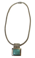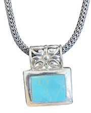 925 Mexico Sterling Silver w/ turquoise Pendant Thick Woven Chain Necklace-Heavy