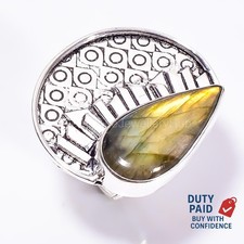 925 Silver Natural Labradorite Handcrafted Sister Band Statement New Ring Size 7