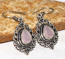925 Silver Plated Pink Chalcedony Earrings Handmade Jewelry Size 1.6" MJ