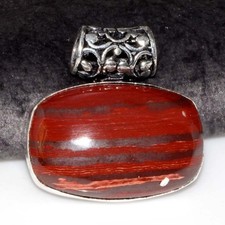 925 Silver Plated Red Jasper Pendant 1.5" Boho Jewelry GW