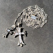 925 Sterling Silver Cross Charm Twist Chain Necklace 60cm