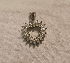 The 925 Sterling Silver CZ Heart Pendant with a Radiating Halo Pattern is a small and elegant jewelry piece that features a sparkling cubic zirconium (CZ) stone set in a halo pattern on the pendant. The piece is made of sterling silver, adding a touch of luxury and durability to the design. Perfect for those looking for a beautiful and timeless pendant for a loved one or as a stylish addition to their jewelry collection. Pre-owned in great condition. This is a pendant only, no chain.