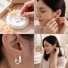These silver small chunky hoop earrings are 14mm by 18mm and 4mm thick,5.7g/0.2oz per pair in weight, thick huggie design, which is minimalist and stylish.Lightweight and comfortable to wear, easy to put on and take off, and won't pull your earlobes down.