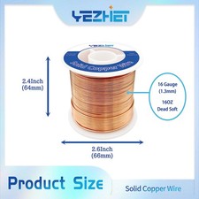 99.9% Solid Bare Copper Wire(16 Gauge(1.3MM, 16 OZ, 130Ft), Dead Soft 16GA