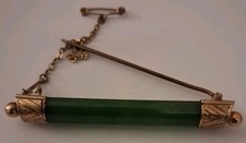 This antique Victorian 9ct gold jade brooch is a stunning piece of fine jewellery originating from the United Kingdom. Crafted with exquisite attention to detail, this brooch features a vibrant jade stone set in yellow gold, making it a unique and valuable addition to any jewellery collection. The timeless design and quality craftsmanship of this piece make it a true treasure for any wearer or collector.