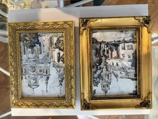 The product is a pair of hand-painted watercolors framed. This artwork is created using the watercolor painting technique, resulting in a unique and detailed painting. The framed artwork adds an extra touch of elegance and professionalism to the piece, making it a perfect addition to any art collection or as a beautiful decorative piece for any room.