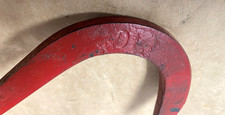 A vintage wood - pulp hook that is in used condition. It is about 10 inches long overall and 5 inches wide at the handle. It has the letters DL stamped into the side. It has been painted red at some point. It is in nice fully functional condition.