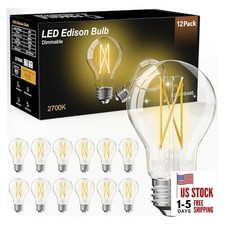 A19 Vintage LED Edison Bulbs, Dimmable, 60W 12 Pack Soft White 2700k