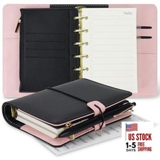A7 Refillable Planner Small Binder Notebook 6 Ring, Portable PU Black & Pink