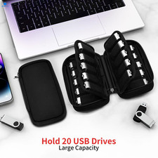 The elastic fabric slots accommodate USB drives of various sizes, ensuring a snug fit for both smaller and larger drives. (note: USB drives displayed in images are not included). 【Robust Protection】Made from premium neoprene, this case shields your USB drives from shocks, scratches, and static electricity for long-lasting durability.
