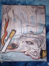 Abstract Mixed Media Collage Art Face with Cigarette OOAK Original Canvas