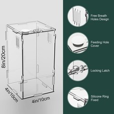 Acrylic Mini Reptile Tank Habitat Transparent Terrariums with Locking Latch S...